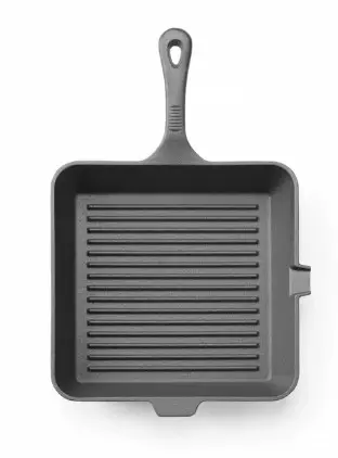 Støpejernsgrillpanne gir utmerket varmebevaring og sprer varmen jevnt og sikrer perfekt tilberedte ingredienser. Det er et ypperlig, tradisjonelt valg for