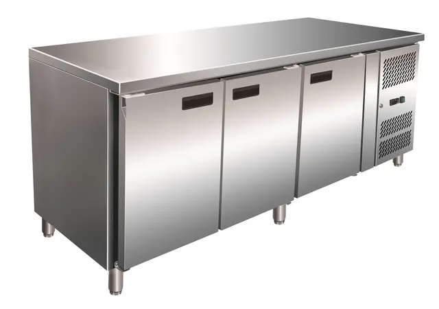 Rustfritt både innvendig og utvendig. 3 hylleplan. Inkludert dørlås. 2/1 GN på hver hylle (eller 2stk 1/1 GN). Viftefordelt/ventilert kjøling. Selvlukkende dør. BxDxH: 148x83x201cm Tilleggsutstyr: Ekstra geidere: 90005610 Ekstra risthylle(hvit): 82104377