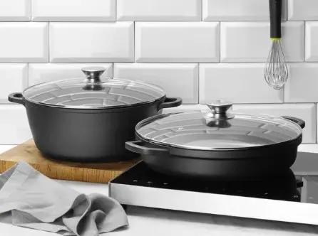 Non-stick-belegget på innsiden gjør det enkelt å løsne maten og gjøre den enkel å rengjøre, mens lokket bidrar til å bevare fuktighet og smak.