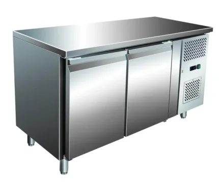 Kjøler med 2 dører og en kapasitet på ca 260 liter. Driftstemperatur: -2 / +6 °C. Laget av rustfritt stål
