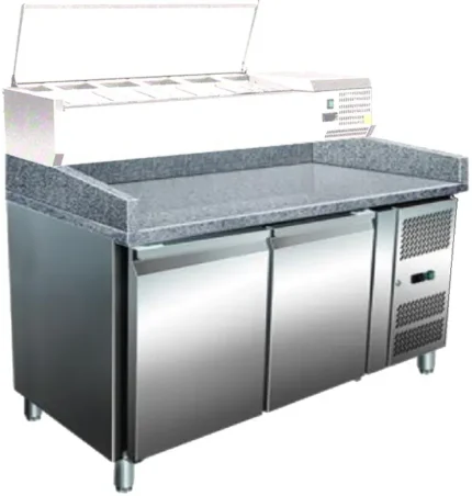 Pizzakjølebenk med dobbelt grnityrkjølekapasitet og låsbarehjul
