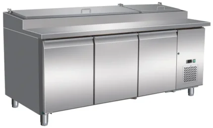 Pizzakjølebenk 3dører ink garnityrkjølere og låsbarehjul