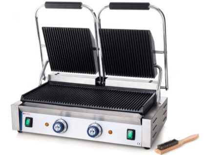 Pressgrill, dobbel Rillet topp og glatt bunn